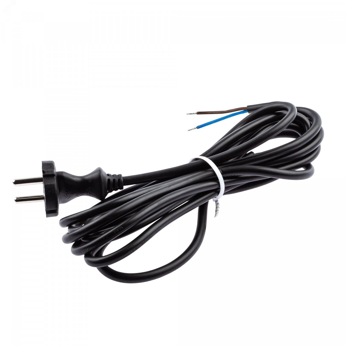 Шнур питания с вилкой UX-2x0,75-5m-B без заземления, провод ПВС с сечением 2x0,75мм2, длина 5 м, цвет - черный. Провод шнура питания состоит из скрученных жил с надежной ПВХ оболочкой. На конце шнура имеется штепсельная вилка. Изделие предназначено для комплектации или ремонта электрических бытовых приборов.