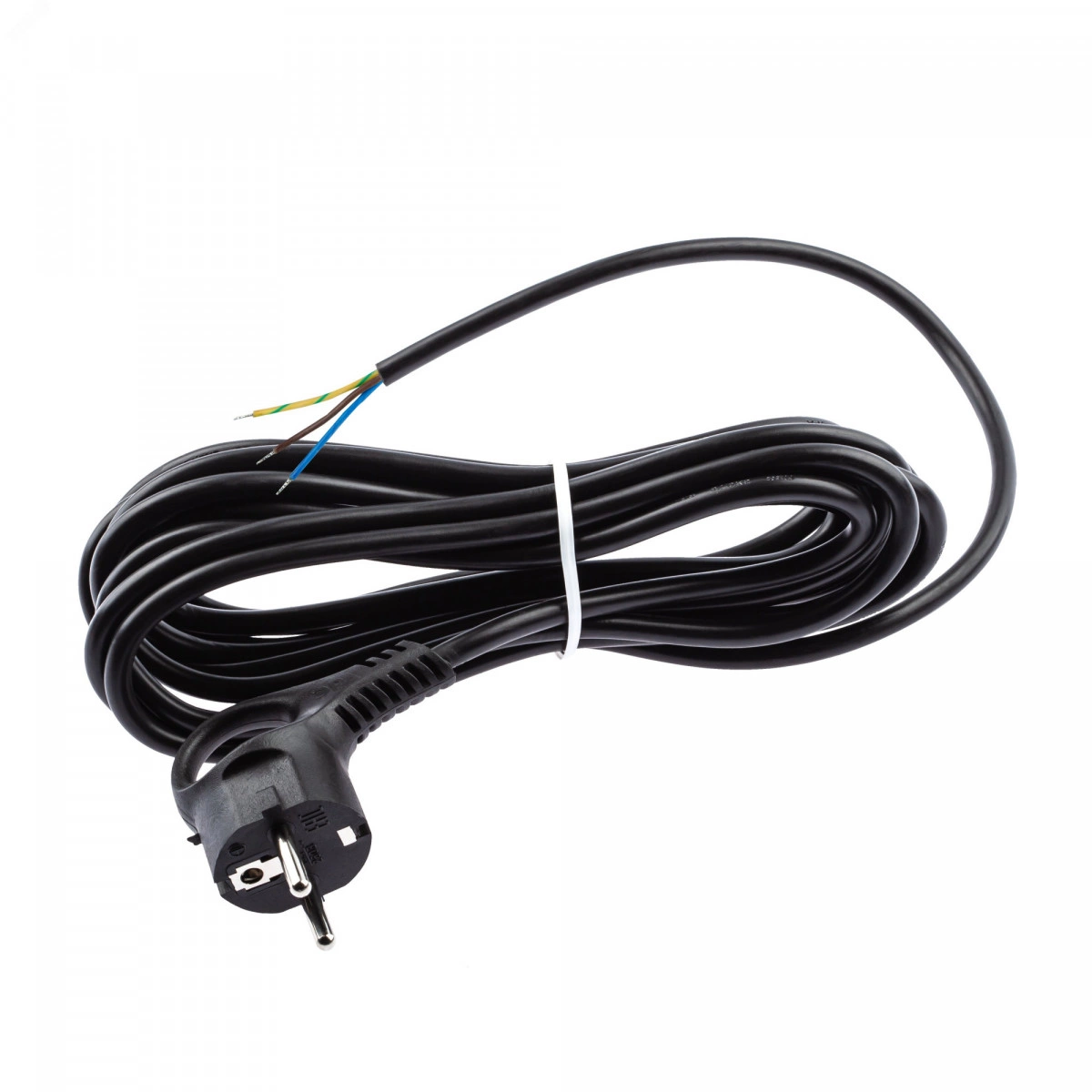 Шнур питания с вилкой UX-3x0,75-5m-B с заземлением, провод ПВС с сечением 3х0,75, длина 5 м, цвет - черный. Провод шнура питания состоит из скрученных жил с надежной ПВХ оболочкой. На конце шнура имеется штепсельная вилка. Изделие предназначено для комплектации или ремонта электрических бытовых приборов.