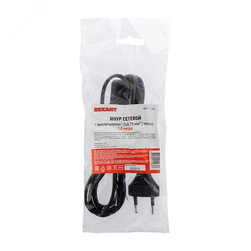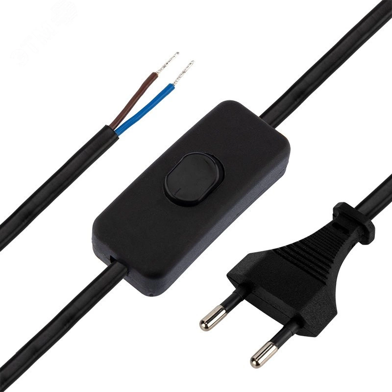 Сетевой шнур с выключателем предназначен для подключения бытовых приборов, осветительной техники и т. д. Шнур состоит из провода ШВВП сечением 0,75 мм2, укомплектованного литой неразборной плоской вилкой (Евро), номинальным током 2,5 А, с подготовленными (зачищенными и лужеными) контактами, посередине провода расположен выключатель в корпусе из ABC пластика.