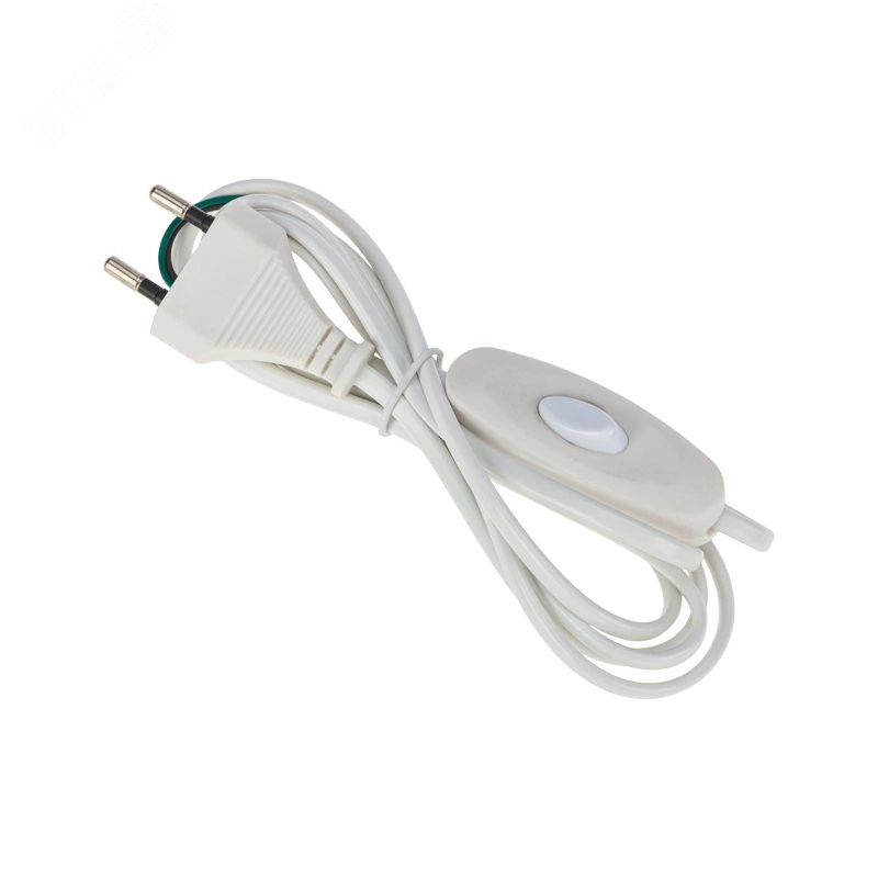 Шнур сетевой 1.8М с выключателем без розетки 2.5A-220V белый предназначен для подключения к сети переменного тока (AC) с напряжением 220B электроприборов напрямую (скруткой или клеммным соединителем), без использования розетки. Данный шнур состоит из двухжильного провода, с одной стороны литой неразборной плоской вилки (Евро), с другой подготовленных (зачищенных и облуженных оловом) проводников и расположенного посередине провода пластикового выключателя.