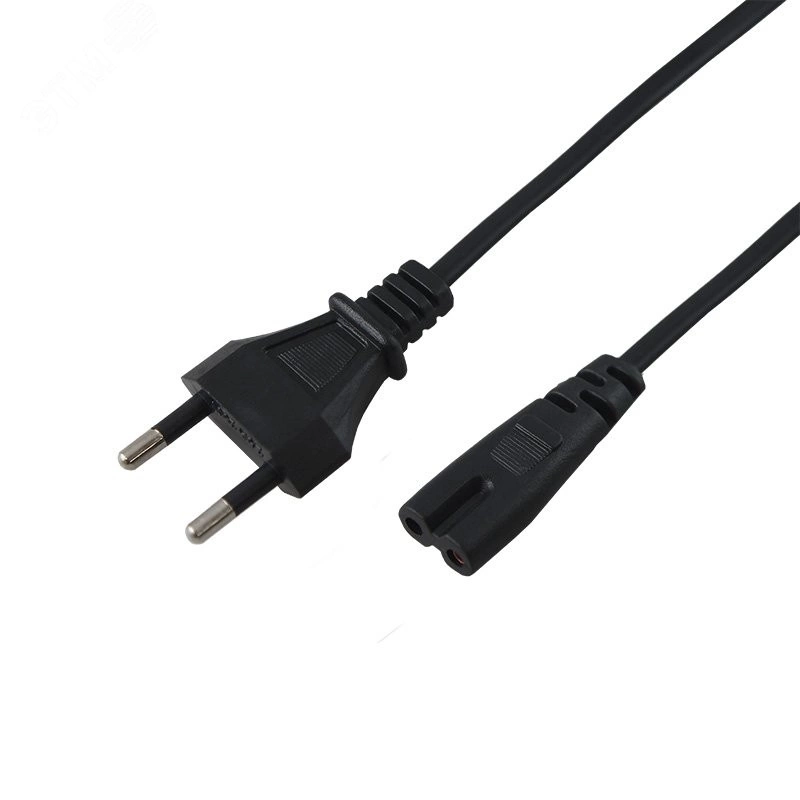 Шнур сетевой 3 м 2x0.75 мм2 REXANT предназначен для подключения к сети переменного тока (AC) с напряжением 220 B аудио- и видеоаппаратуры, источников питания ноутбуков, игровых консолей и других приборов, имеющих штыревой сетевой разъем типа С8 (известен из-за его формы как ''восьмерка''). Данный сетевой шнур (IEC cord) состоит из двухжильного провода с сечением жил 0.75 мм2, с одной стороны литой неразборной плоской вилкой (евро) и с другой — литым гнездовым неполяризованным разъемом типа C7 (евроразъем).