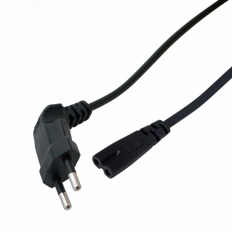 Шнур сетевой, вилка угловая - евроразъем С7, кабель 2x0,75 кв мм, 1,5 м,