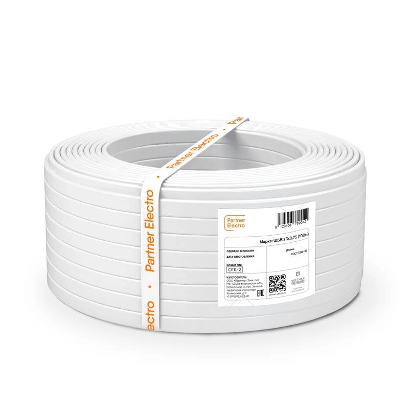 Полное описание: Шнур ШВВП 3х0.75 Б (уп.100м) ПАРТНЕР ЭЛЕКТРО ЦБ-00016049