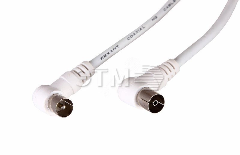 Шнур TV PLUG - TV JACK 1.5 м угловой белый REXANT предназначен для передачи аналоговых аудио- и видеосигнала телевизионной сети к телевизору при подключении к телевизионной розетке, для подключения различного телекоммуникационного оборудования (ресиверы, ТВ-приставки и т. д.). Его также можно используют в качестве удлинителя высокочастотного кабеля для передачи ТВ сигнала от телевизионной антенны. C одной стороны шнура располагается угловой штекер TV разъема, с другой — угловое гнездо TV разъема.