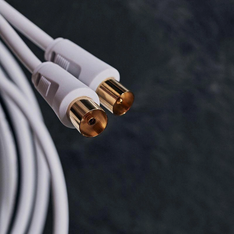 Шнур TV PLUG - TV JACK 10М Белый REXANT предназначен для передачи высокочастотного сигнала к телевизору, спутниковым ресиверам и т.д., а также используют в качестве удлинителя для TV-кабеля. Такой удлинитель незаменим при подключении нескольких телевизоров. C одной стороны шнура располагается штекер TV-разъема, с другой гнездо TV-разъема. Корпус разъемов выполнен из качественного, легкого и прочного пластика. Контакты никелированы и обеспечивают высокий уровень передачи сигнала к оборудованию. Цвет шнура – белый, а длина составляет 10 метров. Профессиональный уровень надежности достигается благодаря применению качественных материалов и высокотехнологичного уровня исполнения шнура.