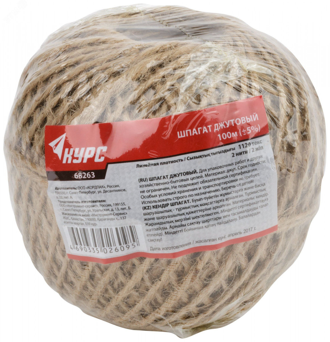 Шпагат джутовый двухниточный 1120 текс 100 м