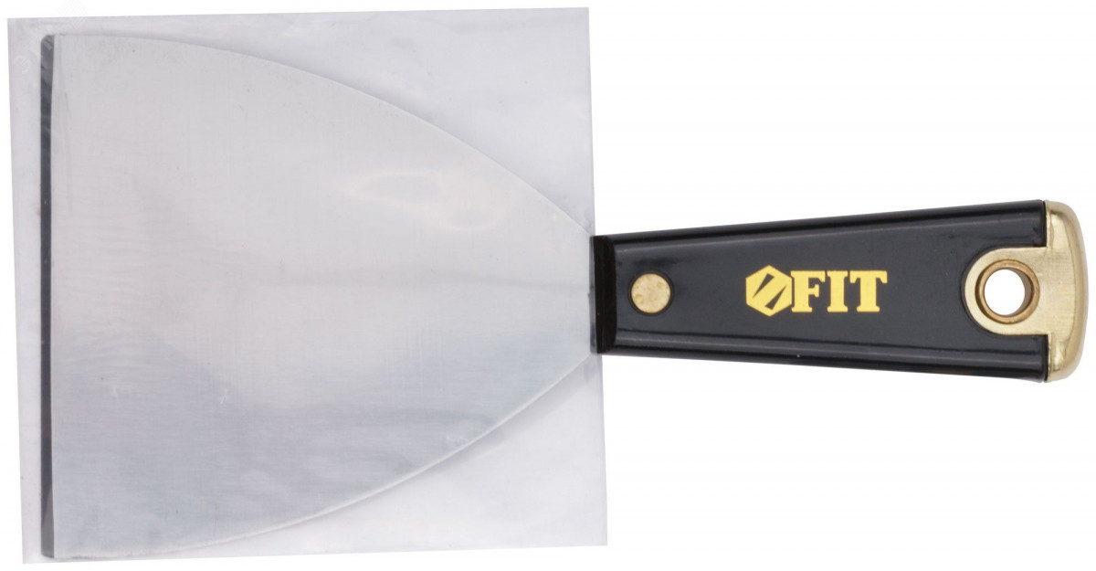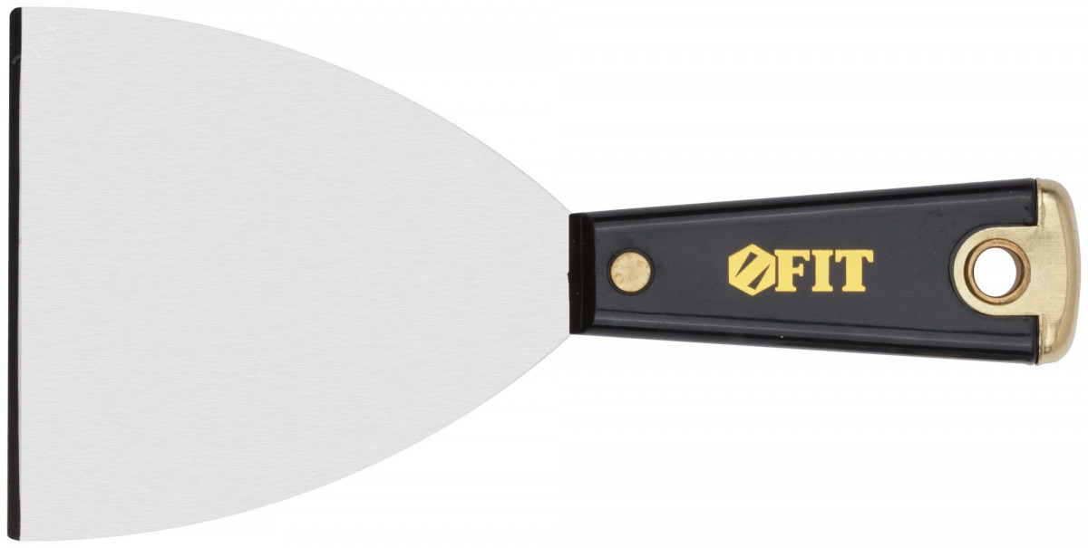 Шпатель FIT IT Профи с заточенной гранью предназначен для зачистки поверхностей от ржавчины и загрязнений. Лезвие изготовлено из полированной усиленной стали HRC 72–78 и обладает высокой износостойкостью. Рукоятка шпателя оснащена металлическим бойком, что позволяет наносить по ней легкие удары молотком. Отверстие в рукоятке позволяет хранить шпатель в подвешенном положении.
