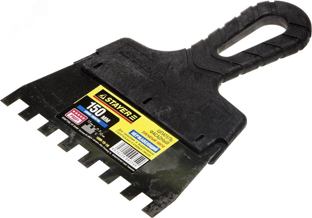 Благодаря зубчатой кромке шпатель идеально подходит для работы со строительными и клеевыми смесями, полотно из нержавеющей стали обеспечивает надежность и долгий срок службы, а удобная пластмассовая рукоятка создает условия для комфортной работы.