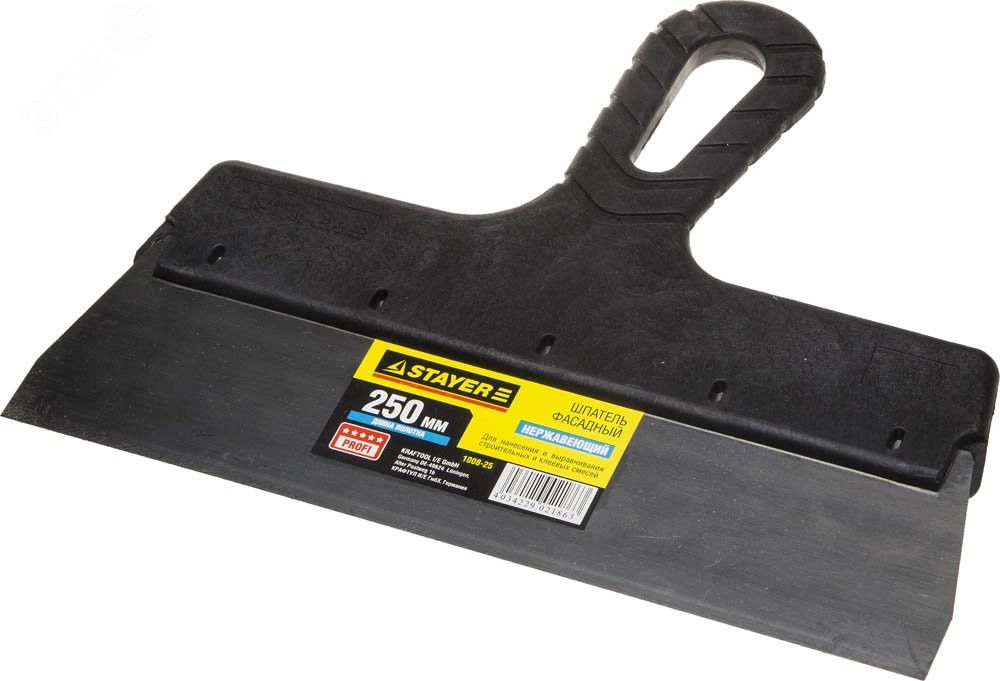 Шпатель фасадный Профи, нержавеющая сталь, прорезиненная ручка 250 мм