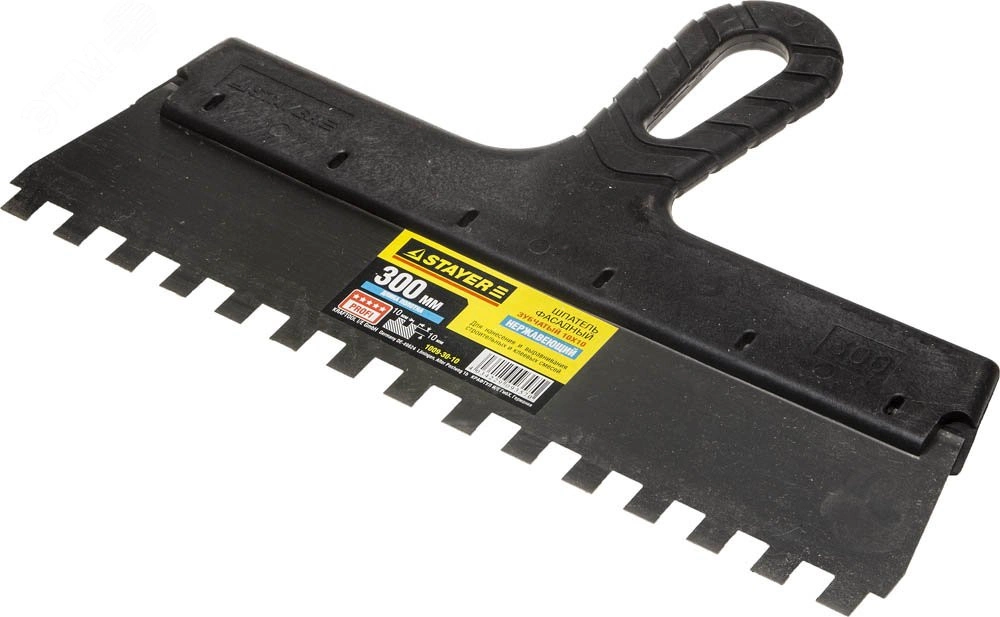 Благодаря зубчатой кромке шпатель идеально подходит для работы со строительными и клеевыми смесями, полотно из нержавеющей стали обеспечивает надежность и долгий срок службы, а удобная пластмассовая рукоятка создает условия для комфортной работы.