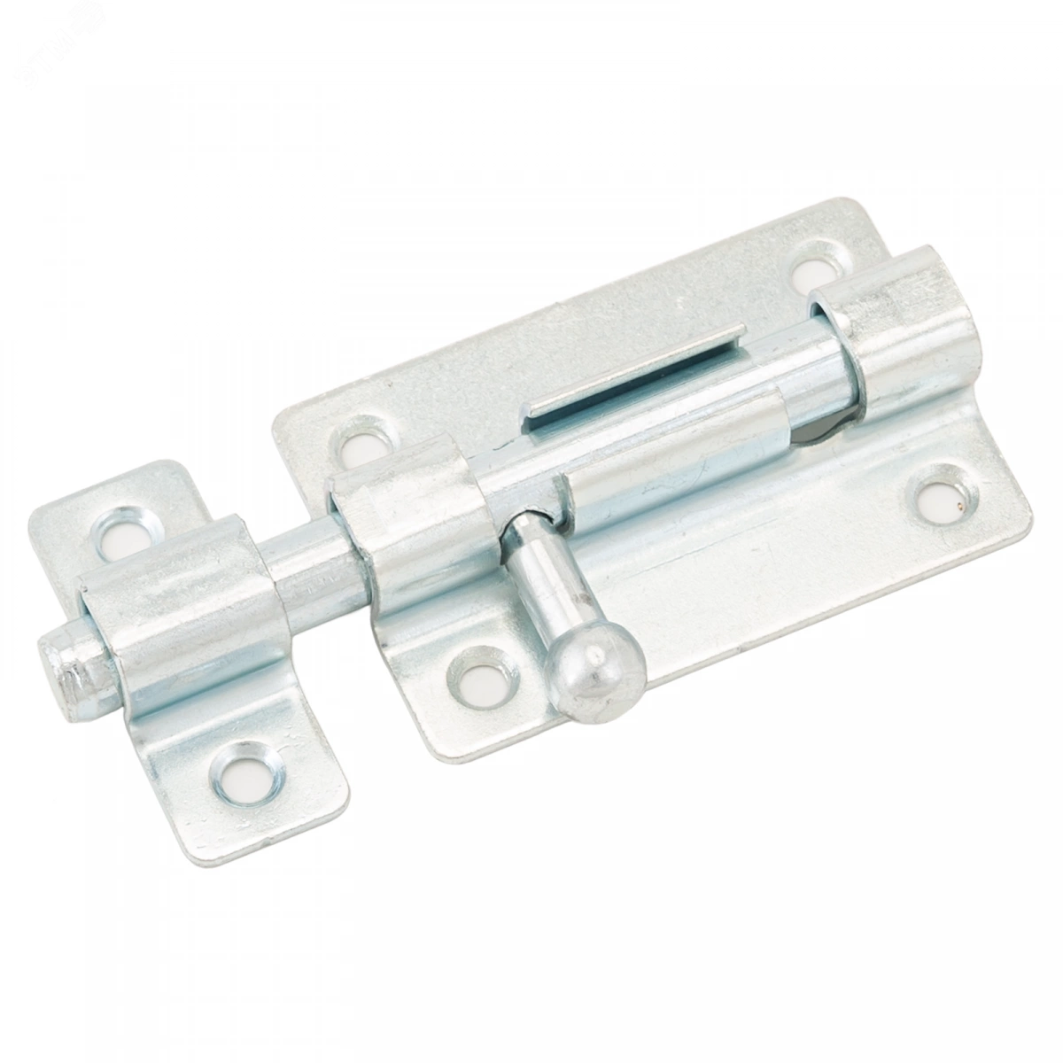 Засов накладной для деревянных и металлических дверей. Материал - сталь, полимерное покрытие. Габариты корпуса - 115х63 мм, 4 крепежных отверстия. Г-образный цилиндрический ригель диаметром 13 мм с вылетом 35 мм. В комплекте ответная планка.