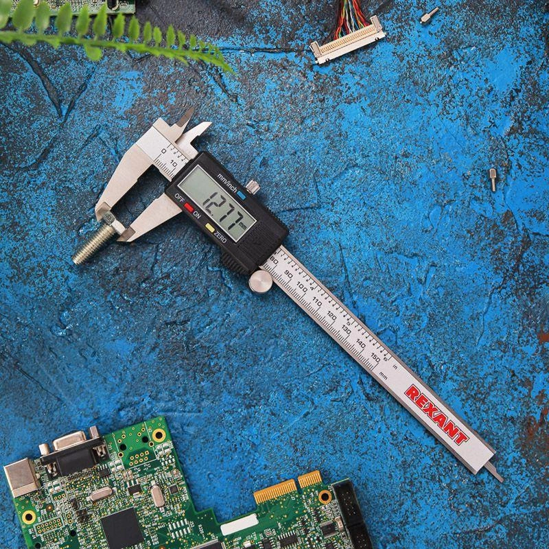 Электронный штангенциркуль 150 мм REхANT применяется в машиностроении, приборостроении и других отраслях промышленности для измерения наружных и внутренних линейных размеров, а также глубин.