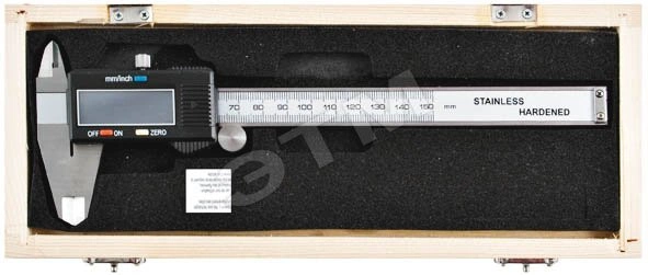 Для наружных и внутренних измерений. С электронным отсчетом. Точность 0,02 мм. В пластиковом футляре. Питание - батарейка SR44 (входит в комплект поставки). Материал - нержавеющая сталь.