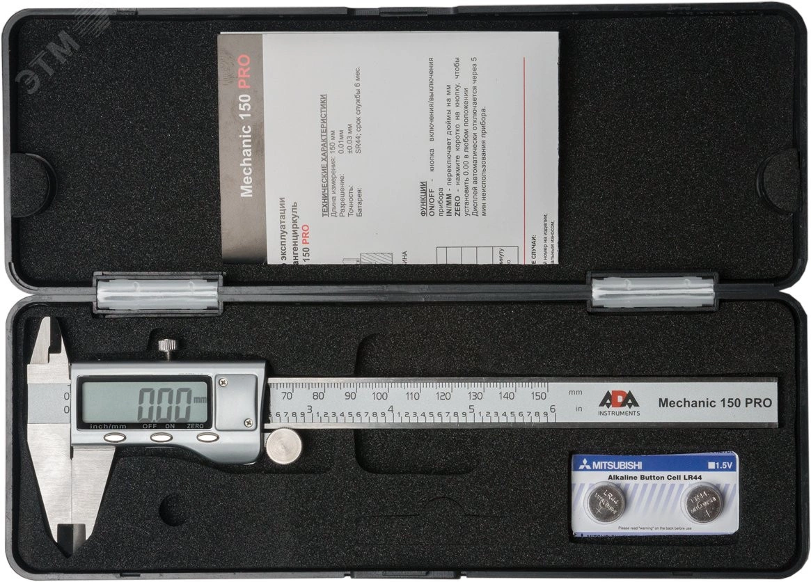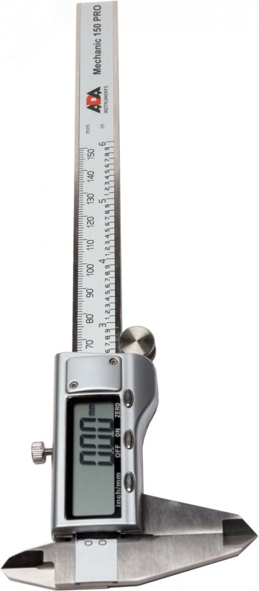 Цифровой штангенциркуль ADA Mechanic 150 Pro используется для проведения как наружных, так и внутренних измерений различных изделий или заготовок. Измерения производятся с высокой точностью ±0.03 мм. Результаты отображаются на ЖК дисплее с точностью до тысячных. Нажатием кнопки можно перевести миллиметры в дюймы. Результаты измерения отражаются на ЖК экране крупными цифрами. В любом положении подвижной рамки можно обнулить значение и начать измерения от этого положения. Например при определении разницы между диаметрами двух деталей. ADA Mechanic 150 Pro полностью изготовлен из инструментальной нержавеющей стали. Включение штангенциркуля происходит автоматически при сдвиге рамки. Подвижная рамка имеет специальное колесико для точной установки.ADA Mechanic 150 Pro - точный и качественный ручной измерительный инструмент для профессионалов.