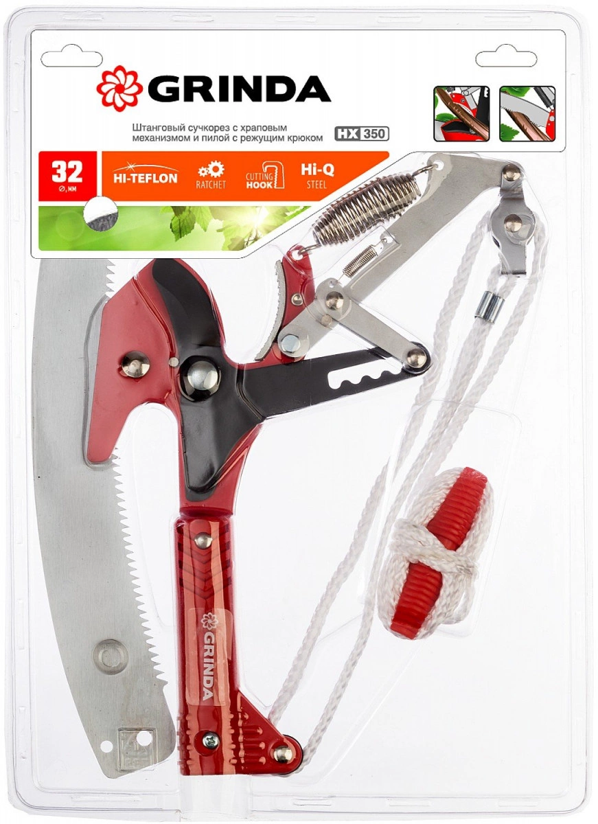 Штанговый сучкорез с храповым механизмом и пилой с режущим крюком HX-350 предназначен для обрезки веток кустарников или деревьев. Лезвие изготовлено из высококачественной углеродистой стали и остро заточено. Удобен в эксплуатации благодаря прочной стали, удобным рельефным рукояткам и качественному исполнению лезвий.