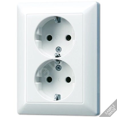 Штепсельная розетка двойная с шторками SCHUKO 16A 250В. Материал- термопласт. Цвет- белый.