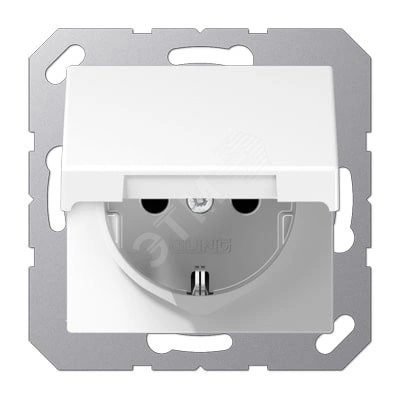 Штепсельная розетка SCHUKO одинарная, с заземлением, с крышкой, с шторками, 16A, 250В (механизм + накладка, без рамки). Серия A500 Материал- дуропласт Цвет- белый