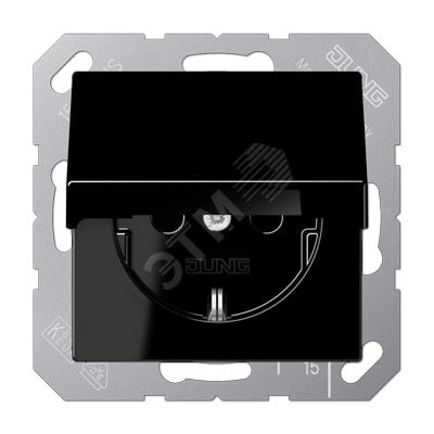 Штепсельная розетка SCHUKO одинарная, с заземлением, с крышкой, без шторок, 16A, 250В (механизм + накладка, без рамки). Серия A500 Материал- термопласт Цвет- черный