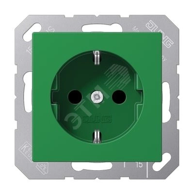 Полное описание: Штепсельная розетка SCHUKO одинарная, с заземлением, без шторок, 16A, 250В (механизм + накладка, без рамки). Серия A500 Материал- термопласт Цвет- зеленый