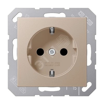 Полное описание: Штепсельная розетка SCHUKO одинарная, с заземлением, без шторок, 16A, 250В (механизм + накладка, без рамки). Серия A500 Материал- дуропласт Цвет- шампань