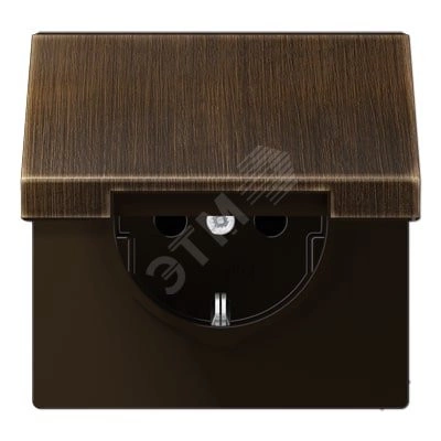 Штепсельная розетка SCHUKO одинарная, с заземлением, с откидной крышкой, 16A, 250В (механизм + накладка, без рамки). Серия LS990 Материал- металл Цвет- античная латунь