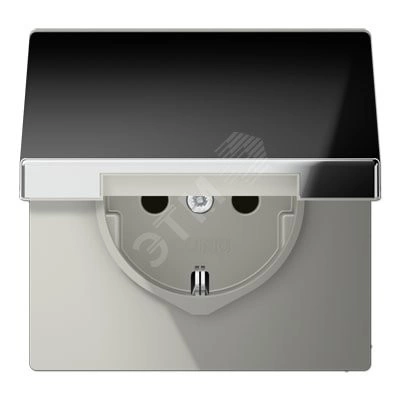 Штепсельная розетка SCHUKO одинарная, с заземлением, с откидной крышкой, 16A, 250В (механизм + накладка, без рамки). Серия LS990 Материал- металл Цвет- полированный хром