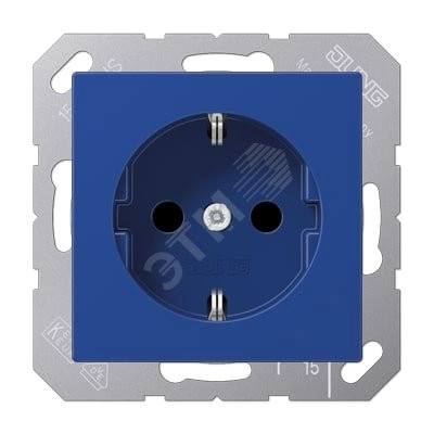 Полное описание: Штепсельная розетка SCHUKO одинарная, с заземлением, с шторками, 16A, 250В (механизм + накладка, без рамки). Серия A500 Материал- термопласт Цвет- синий