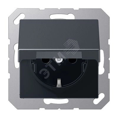 Штепсельная розетка SCHUKO одинарная, с заземлением, с крышкой, без шторок, 16A, 250В (механизм + накладка, без рамки). Серия A500 Материал- термопласт Цвет- матовый антрацит