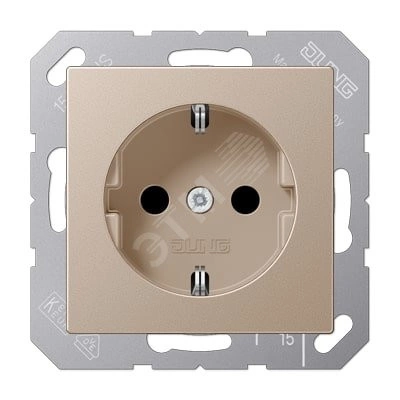 Полное описание: Штепсельная розетка SCHUKO одинарная, с заземлением, с шторками, 16A, 250В (механизм + накладка, без рамки). Серия A500 Материал- дуропласт Цвет- шампань