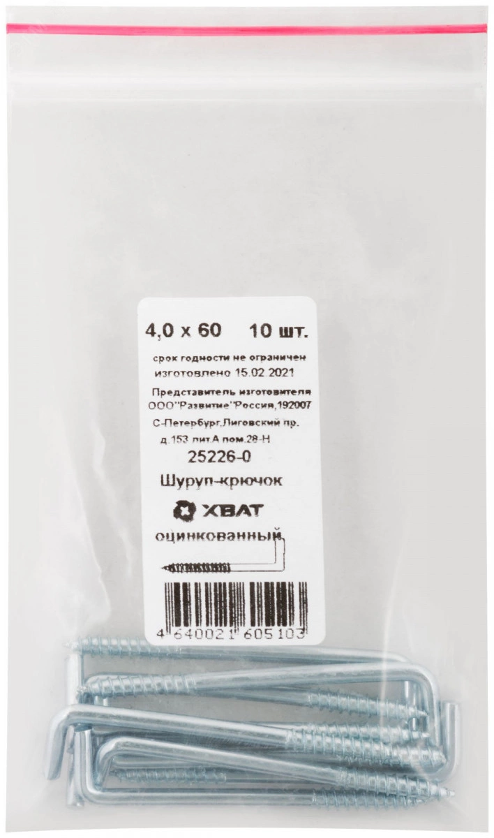Шуруп-полукольцо 3,5х40 (4шт) - пакет