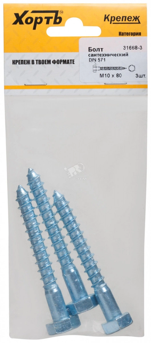Шуруп DIN571 10х80 сантехнический, шестигранная головка (3шт)