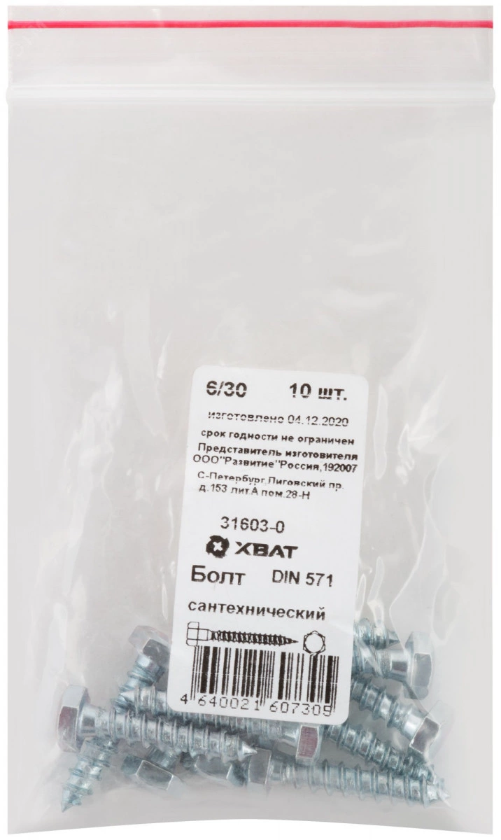 Шуруп DIN571 6х30 сантехнический, шестигранная головка (10шт)