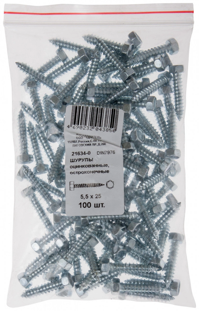 Шуруп DIN7976 5,5х25 шестигранная головка, остроконечный (250шт)