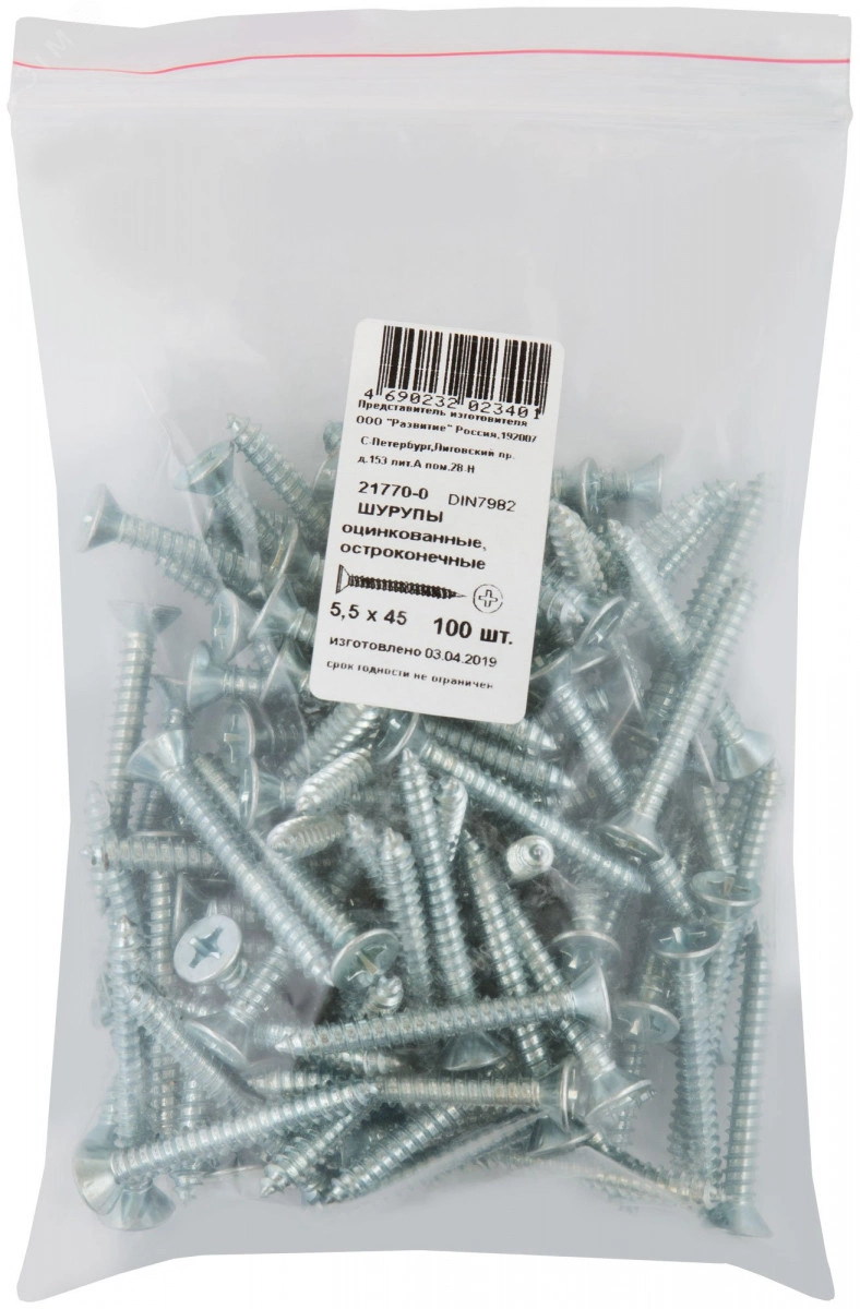 Шуруп DIN7982 5,5х45 потайная головка, остроконечный (100шт)
