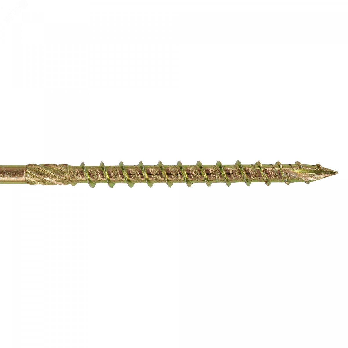Конструкционный шуруп предназначен для монтажа деревянных конструкций. Изготовлен из оцинкованной стали с желтопассивированным покрытием. Шуруп имеет заостренный конец с проточкой, фрезу для рассверливания отверстия до диаметра гладкого тела, неполную резьбу, головку с пресс-шайбой и со шлицем Torx. Данные конструктивные особенности обеспечивают легкое вхождение шурупа в древесину без ее раскалывания и прочную фиксацию элементов и изделий из древесины.