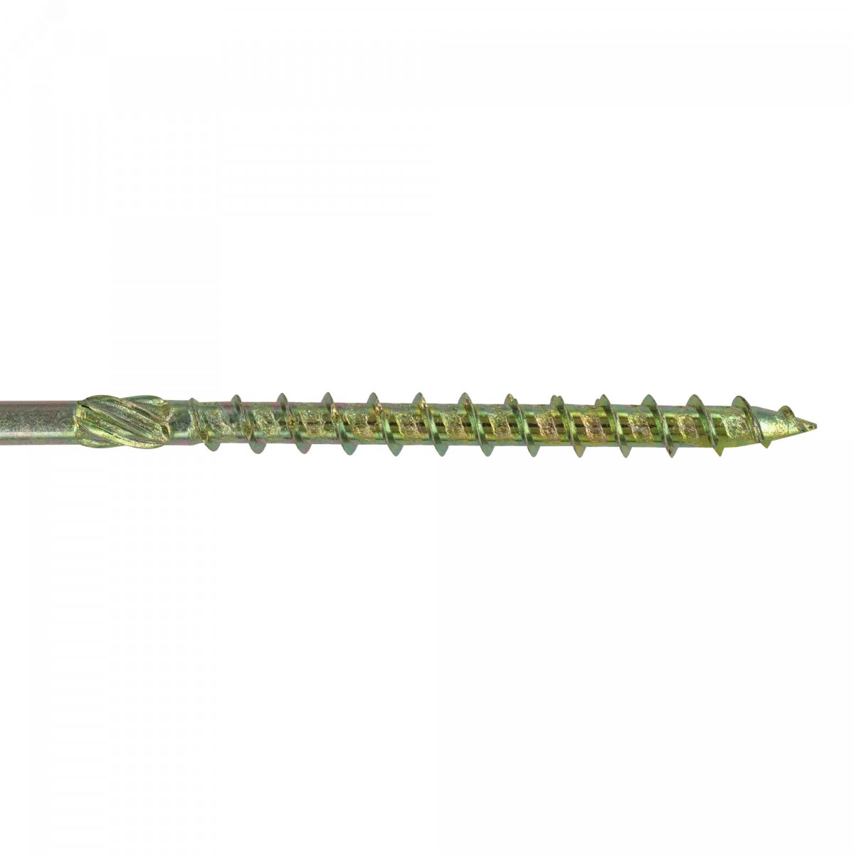 Конструкционный шуруп предназначен для монтажа деревянных конструкций. Изготовлен из оцинкованной стали с желтопассивированным покрытием. Шуруп имеет заостренный конец с проточкой, фрезу для рассверливания отверстия до диаметра гладкого тела, неполную резьбу, головку с пресс-шайбой и со шлицем Torx. Данные конструктивные особенности обеспечивают легкое вхождение шурупа в древесину без ее раскалывания и прочную фиксацию элементов и изделий из древесины.