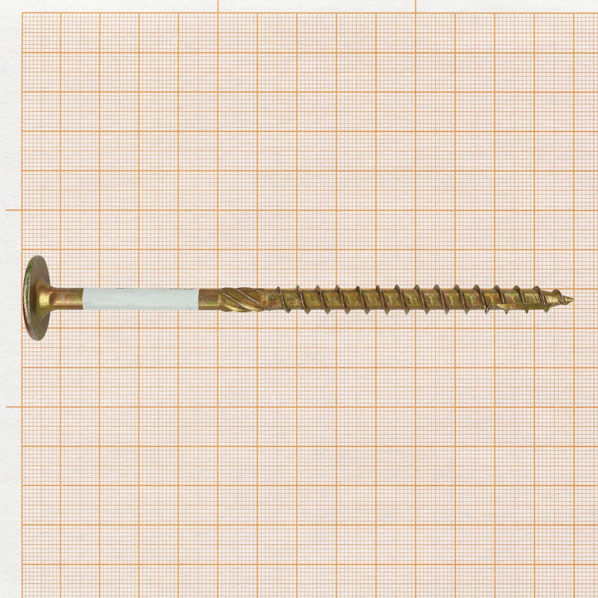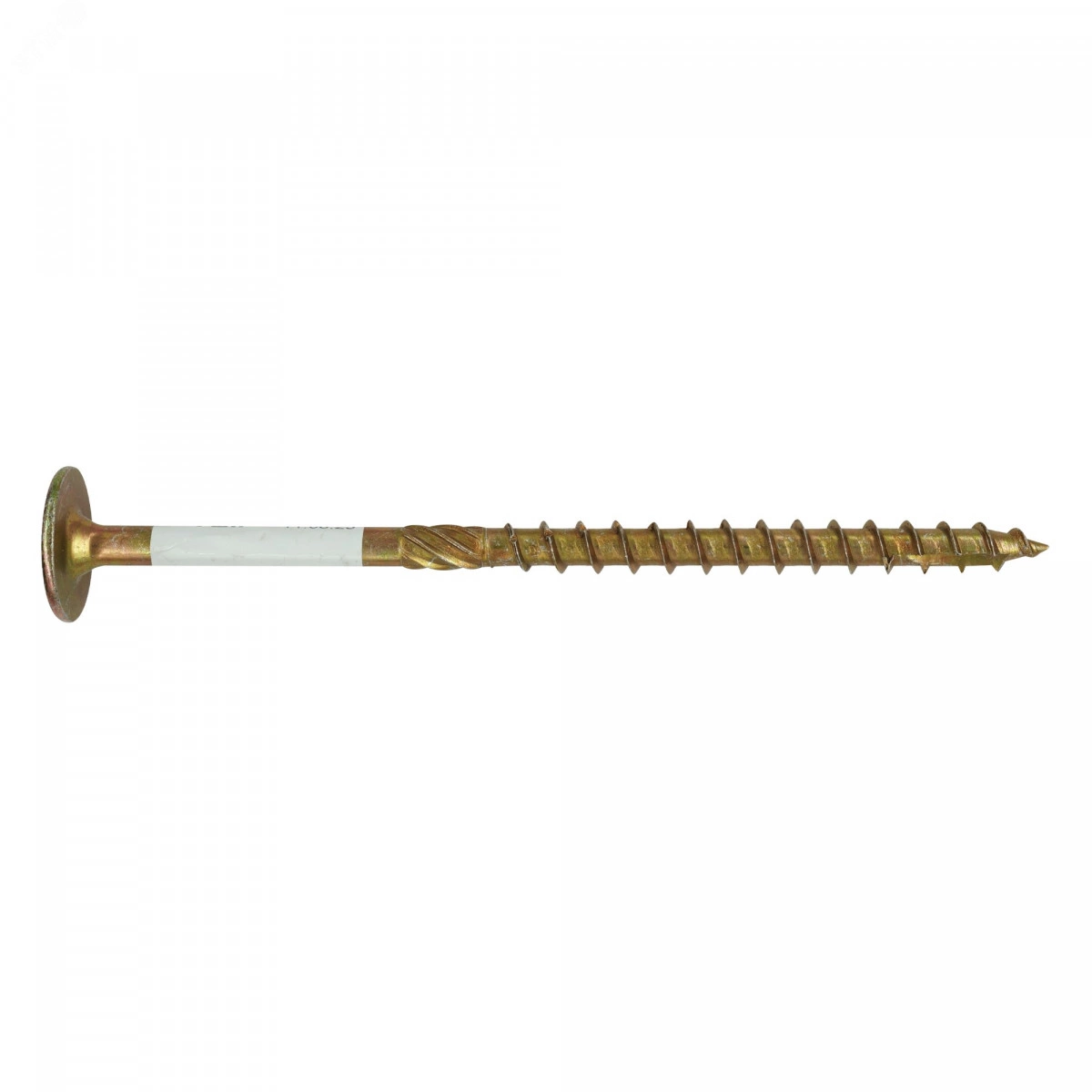 Конструкционный шуруп предназначен для монтажа деревянных конструкций. Изготовлен из оцинкованной стали с желтопассивированным покрытием. Шуруп имеет заостренный конец с проточкой, фрезу для рассверливания отверстия до диаметра гладкого тела, неполную резьбу, головку с пресс-шайбой и со шлицем Torx. Данные конструктивные особенности обеспечивают легкое вхождение шурупа в древесину без ее раскалывания и прочную фиксацию элементов и изделий из древесины.