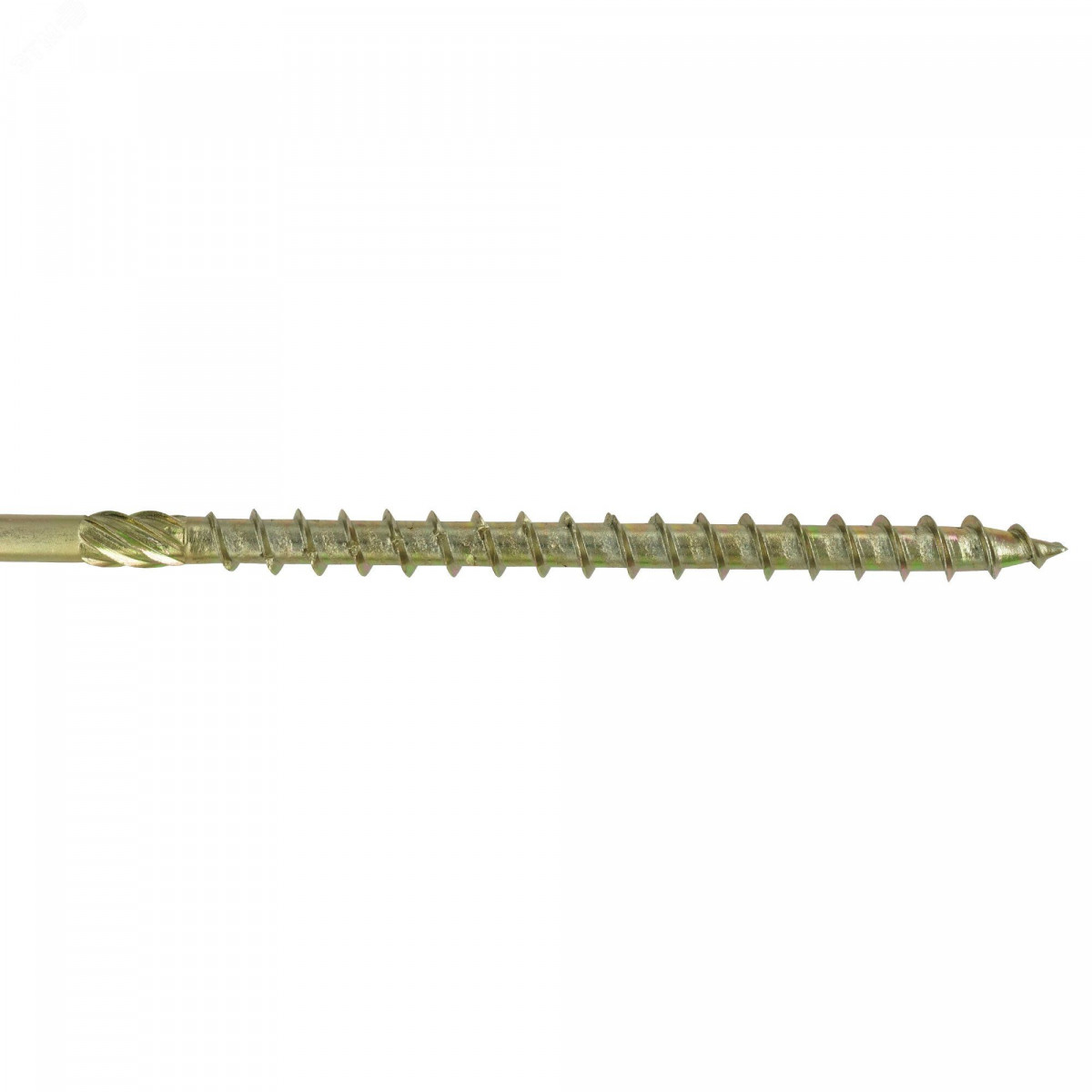 Конструкционный шуруп предназначен для монтажа деревянных конструкций. Изготовлен из оцинкованной стали с желтопассивированным покрытием. Шуруп имеет заостренный конец с проточкой, фрезу для рассверливания отверстия до диаметра гладкого тела, неполную резьбу, головку с пресс-шайбой и со шлицем Torx. Данные конструктивные особенности обеспечивают легкое вхождение шурупа в древесину без ее раскалывания и прочную фиксацию элементов и изделий из древесины.