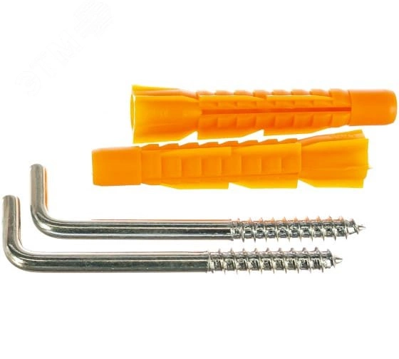 Шуруп-костыль универсальный состоит из двух частей - стального шурупа с плоской головкой, согнутой под прямым углом, и дюбеля с распорными лепестками из прочного полипропилена оранжевого цвета. Такая конструкция обеспечивает надежную фиксацию крепежа. Применяется для крепления различных конструкций в полнотелые и пустотелые материалы, удобен для навешивания картин, декоративных элементов, зеркал, настенных светильников.