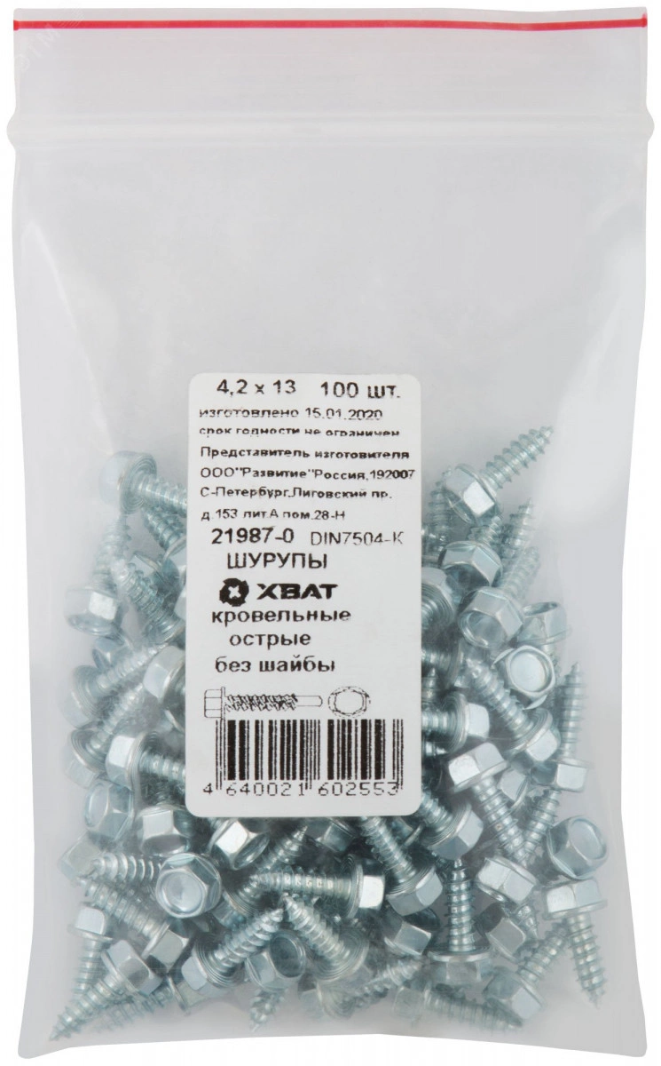 Шуруп кровельный 4,2х13 остроконечный, без шайбы (100шт)