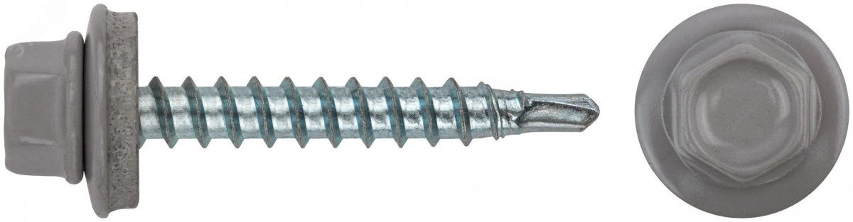 Саморез кровельный 4.8х35 RAL7005 сверло №1 шайба d=14мм с EPDM прокладкой
