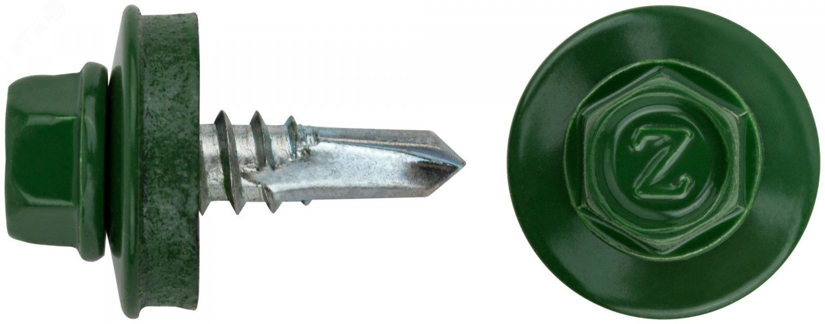 Саморез кровельный 4.8х29 RAL6029 сверло №1 шайба d=14мм с EPDM прокладкой