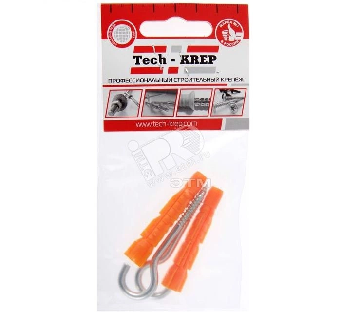 Шуруп-полукольцо с универсальным дюбелем - изделие для монтажа легких подвесных конструкций и устройств, растяжек, которые необходимо снимать и вешать снова в процессе эксплуатации. Оптимален для бытового применения - крепления занавесок, бельевых веревок, тросов, светильников, небольших люстр, кашпо. Предназначен для сплошных и пустотелых кладок, гипсокартона, пенобетона.