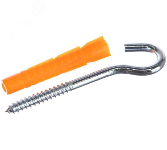 Шуруп-полукольцо с универсальным дюбелем - изделие для монтажа легких подвесных конструкций и устройств, растяжек, которые необходимо снимать и вешать снова в процессе эксплуатации. Оптимален для бытового применения - крепления занавесок, бельевых веревок, тросов, светильников, небольших люстр, кашпо. Предназначен для сплошных и пустотелых кладок, гипсокартона, пенобетона.