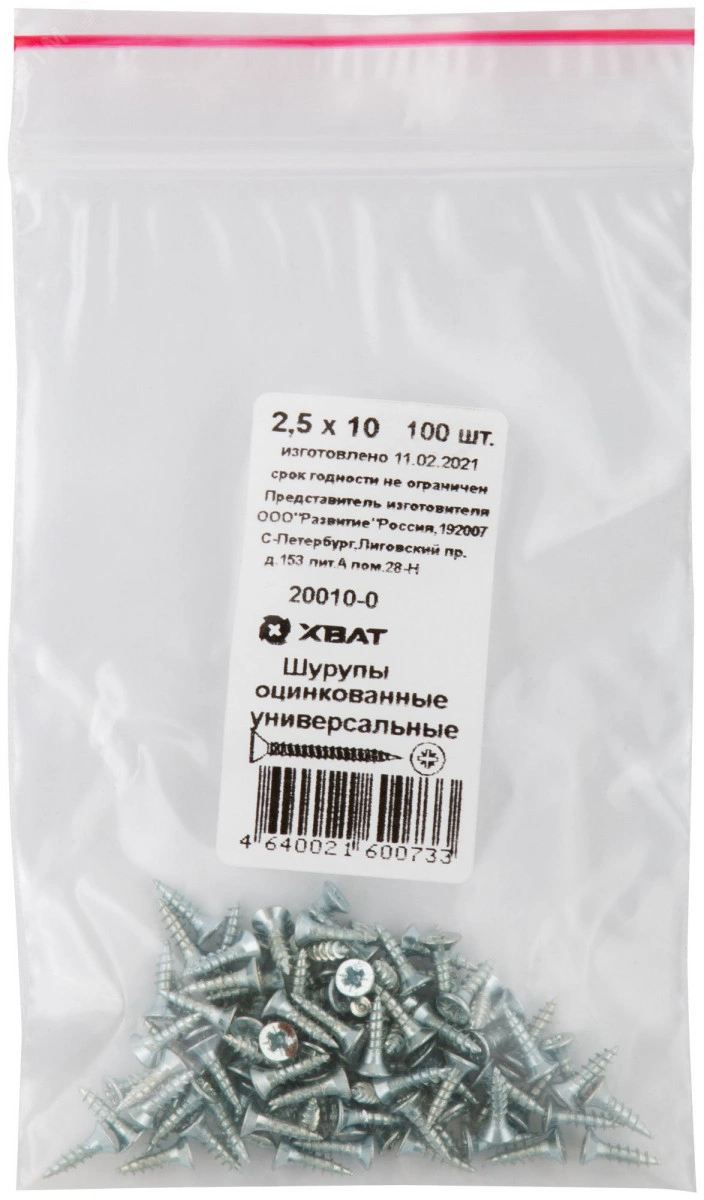 Шуруп универсальный 2,5х10 потайная головка, остроконечный, оцинкованный (100шт)