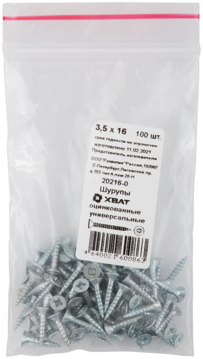 Шуруп универсальный 3,5х16 потайная головка, остроконечный, оцинкованный (100шт)