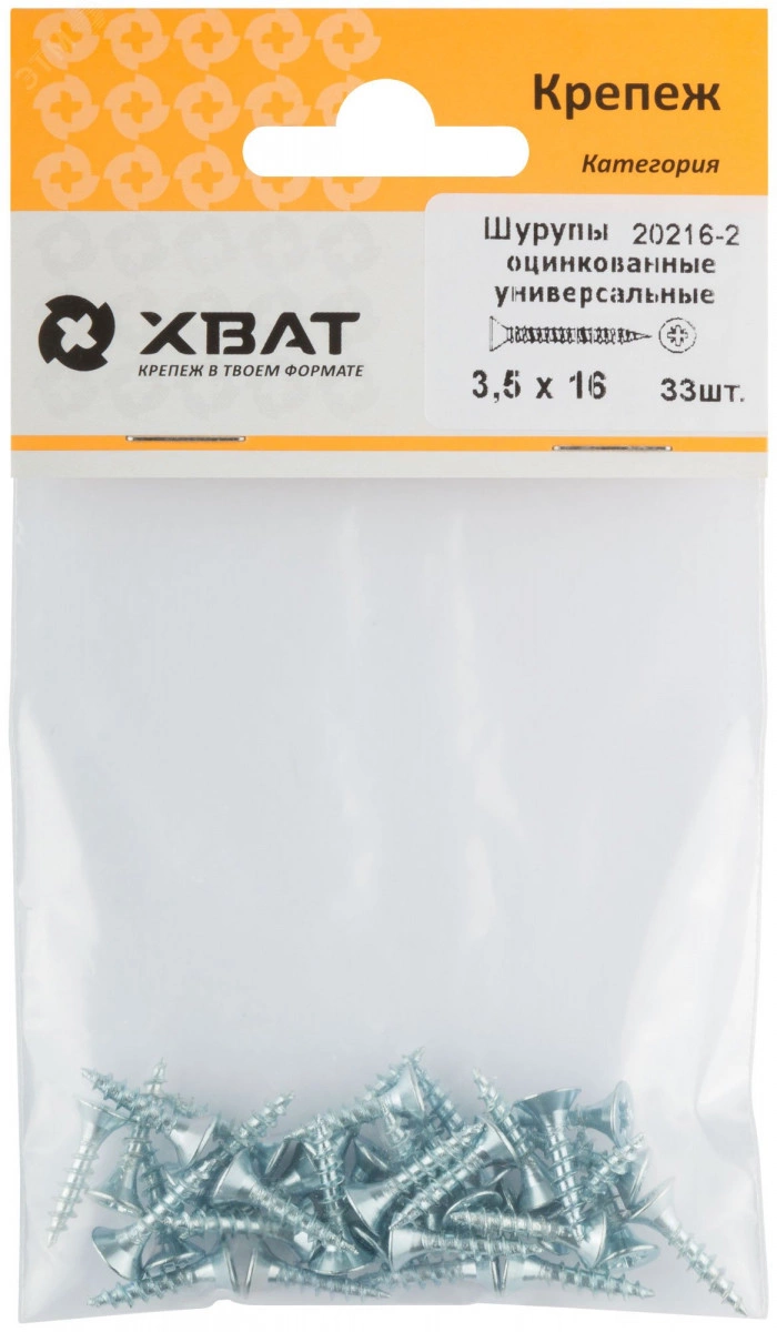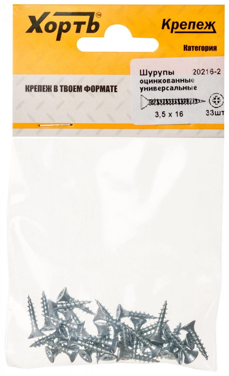 Шуруп универсальный 3,5х16 потайная головка, остроконечный, оцинкованный (33шт)