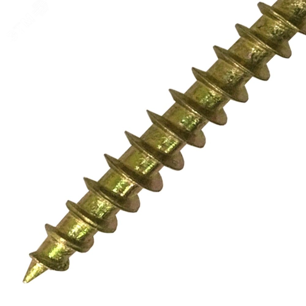 Метиз представляет собой классический остроконечный шуруп. Шляпка оснащена крестообразным шлицем Pozidriv. Метиз оцинкован, что делает его устойчивым к образованию коррозии.