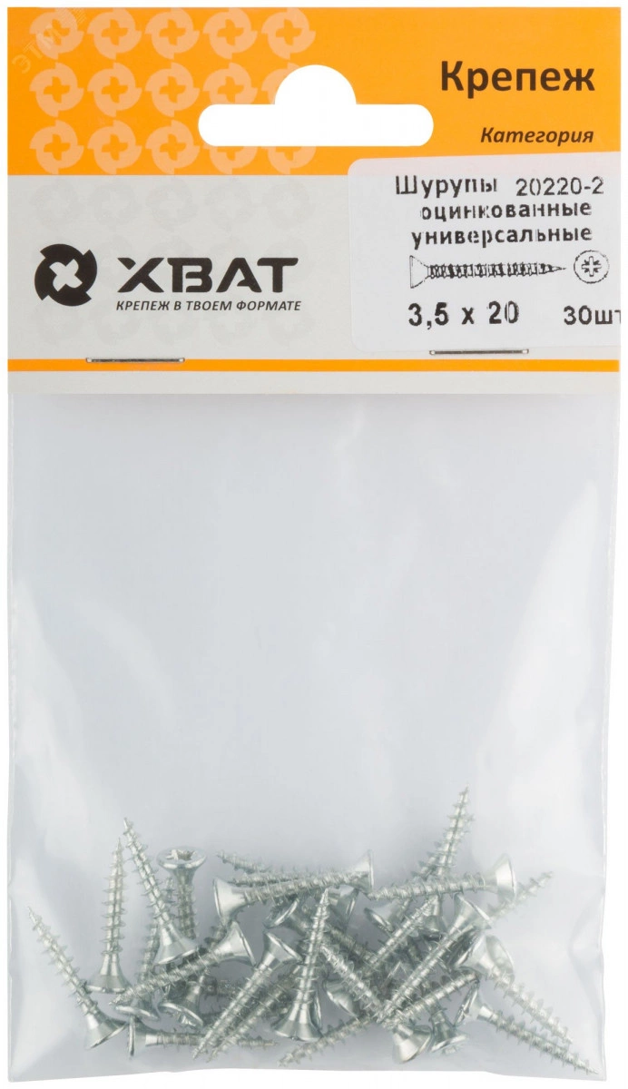 Шуруп универсальный 3,5х20 потайная головка, остроконечный, оцинкованный (30шт)
