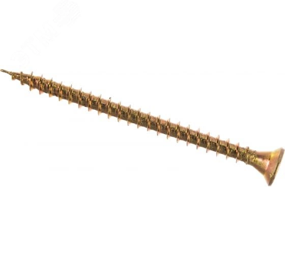 Метиз представляет собой классический остроконечный шуруп. Шляпка оснащена крестообразным шлицем Pozidriv. Метиз оцинкован, что делает его устойчивым к образованию коррозии.
